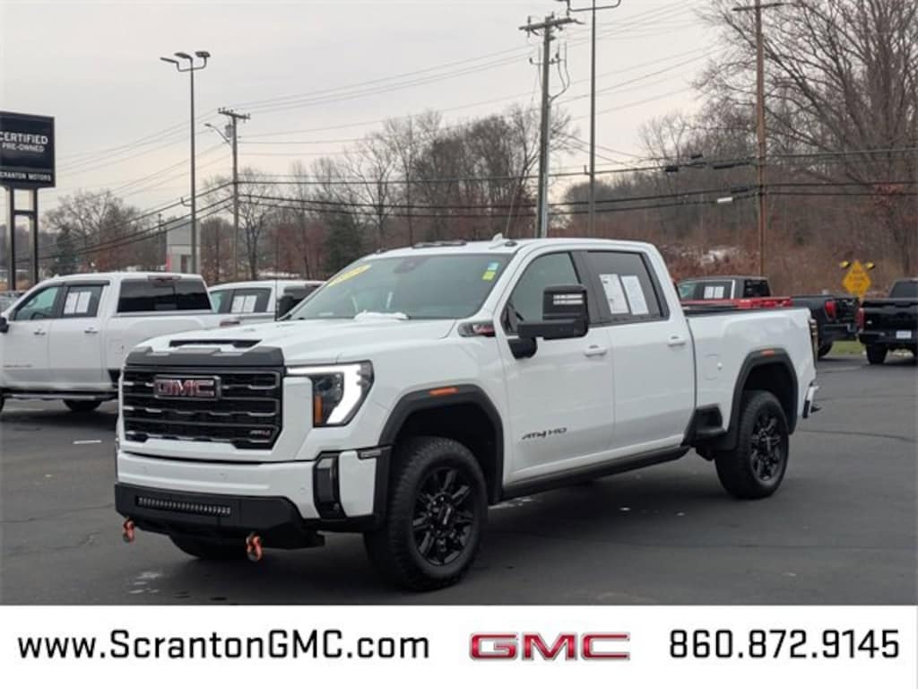 The 2024 GMC Sierra 2500HD AT4 is a powerful and rugged heavy-duty pickup truck designed for serious towing and off-road adventures. With only 22,128 miles, it offers low mileage and shows minimal wear. This model features a robust V8 engine, advanced towing capabilities, and a durable, off-road ready suspension. The AT4 trim adds exclusive features such as skid plates, off-road tires, and a 4WD system for optimal performance on difficult terrains. Inside, you'll find a modern, comfortable cabin with a touchscreen infotainment system, premium materials, and driver-assist technologies. Itâs the perfect combination of strength, technology, and luxury for demanding jobs and outdoor pursuits.